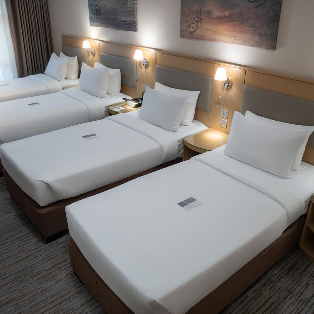 تُعد الغرفة الثلاثية القياسية خيارًا مثاليًا للمجموعات التي تسافر معًا، حيث تضم ثلاثة أسرّة مفردة في أجواء مشرقة ذات ألوان محايدة، تزينها لوحات فنية عصرية.