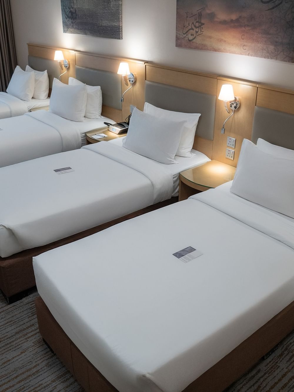 تُعد الغرفة الرباعية القياسية مثالية للمجموعات الكبيرة، وتضم أربعة أسرّة مفردة مع ديكور عصري أنيق وإضاءة طبيعية وفيرة. وتكتمل المساحة بمنطقة جلوس ومكتب عمل وحمام مزود إما بمقصورة دش أو حوض استحمام ودش مدمجين. وتشمل المرافق تلفزيونًا مع قنوات فضائية وخزنة داخل الغرفة وميني بار وهاتفًا للاتصال المباشر ومرافق لإعداد الشاي والقهوة وتكييف هواء قابل للتحكم بشكل فردي.