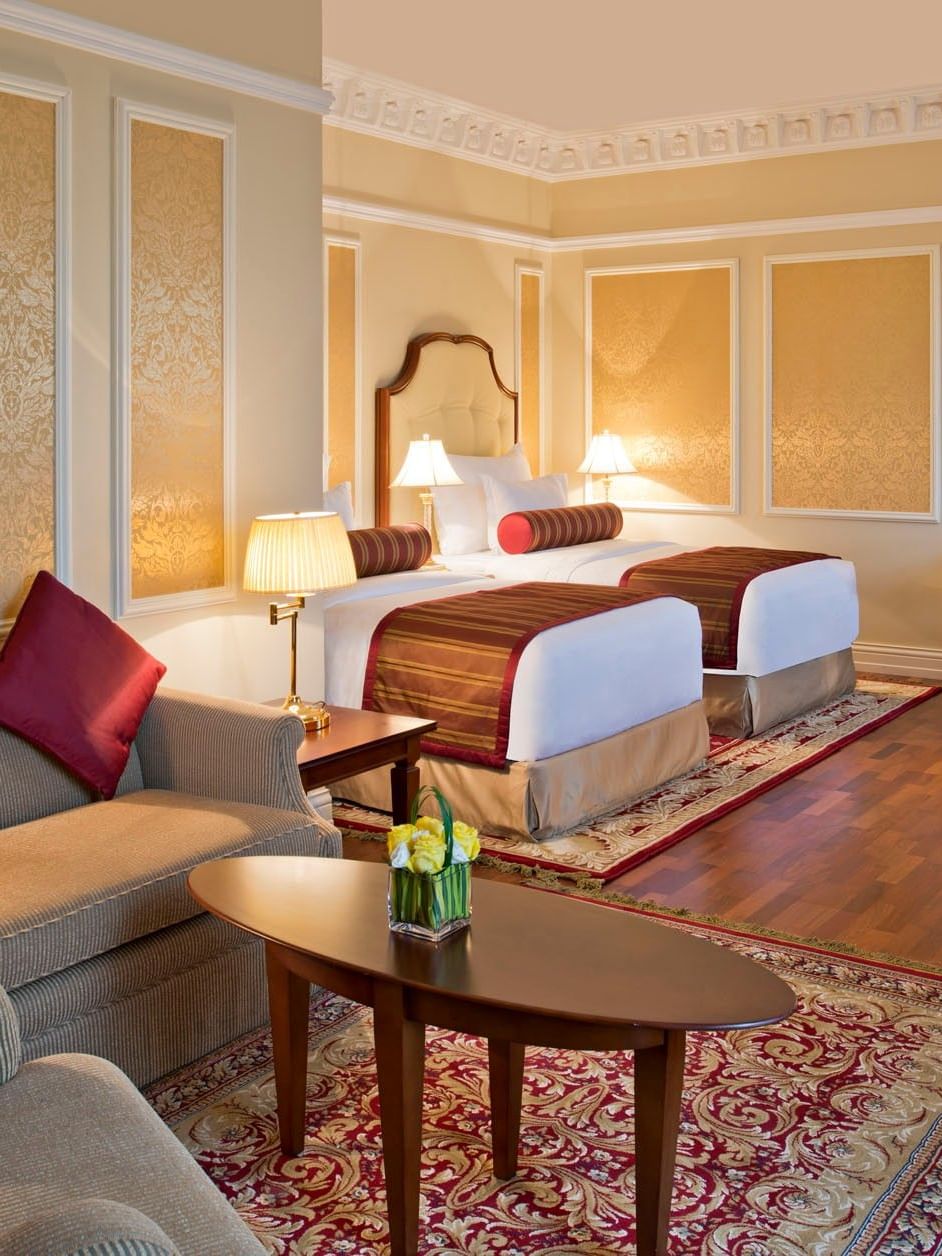 واسعة وهادئة، تقدّم الجونيور سويت تصميم جناح حقيقي مع سريرين مفردين في زاوية النوم ومنطقة صالة منفصلة. مثالية للإقامات الطويلة، الغرفة مزودة بأثاث مريح وأجواء مريحة مصممة للراحة واللحظات الهادئة.