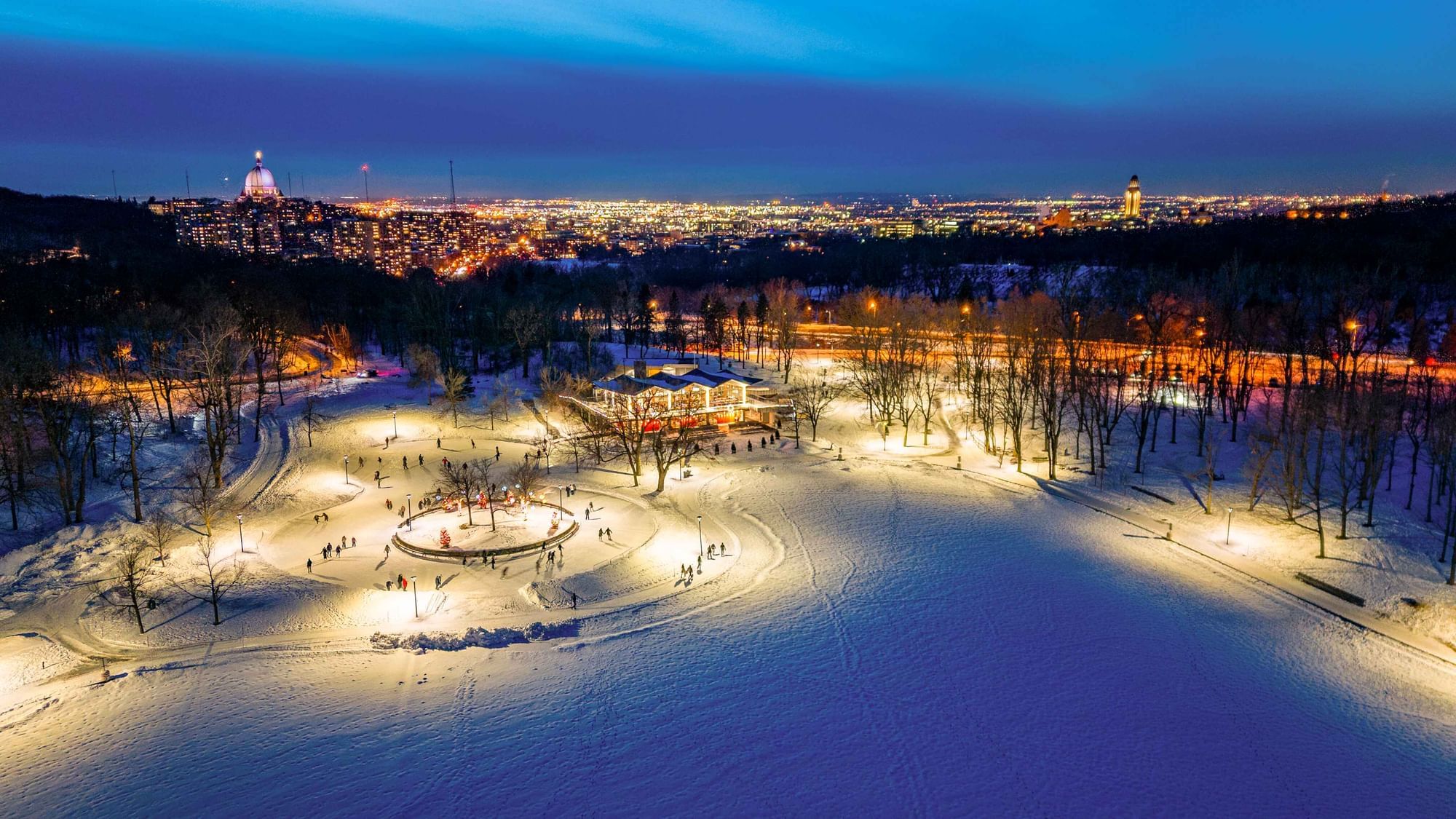 Flânez dans les rues illuminées du Vieux-Montréal, laissez-vous émerveiller par les événements culturels d’hiver ou réchauffez-vous autour d’un chocolat chaud au bord du fleuve gelé. Pour les amoureux de la nature, le parc du Mont-Royal se pare de blanc et offre des panoramas féériques sous la neige.
