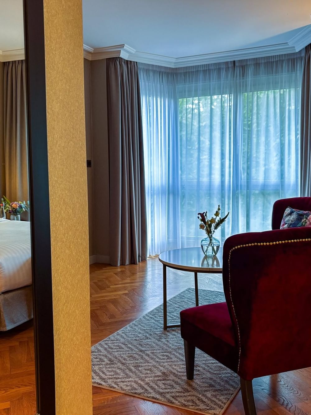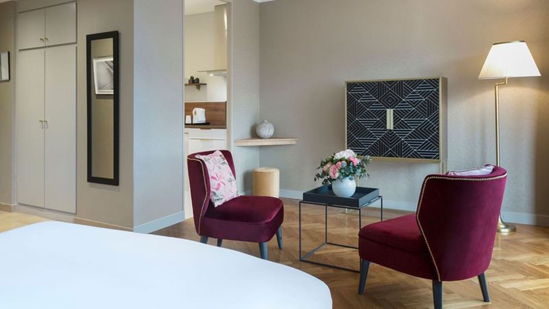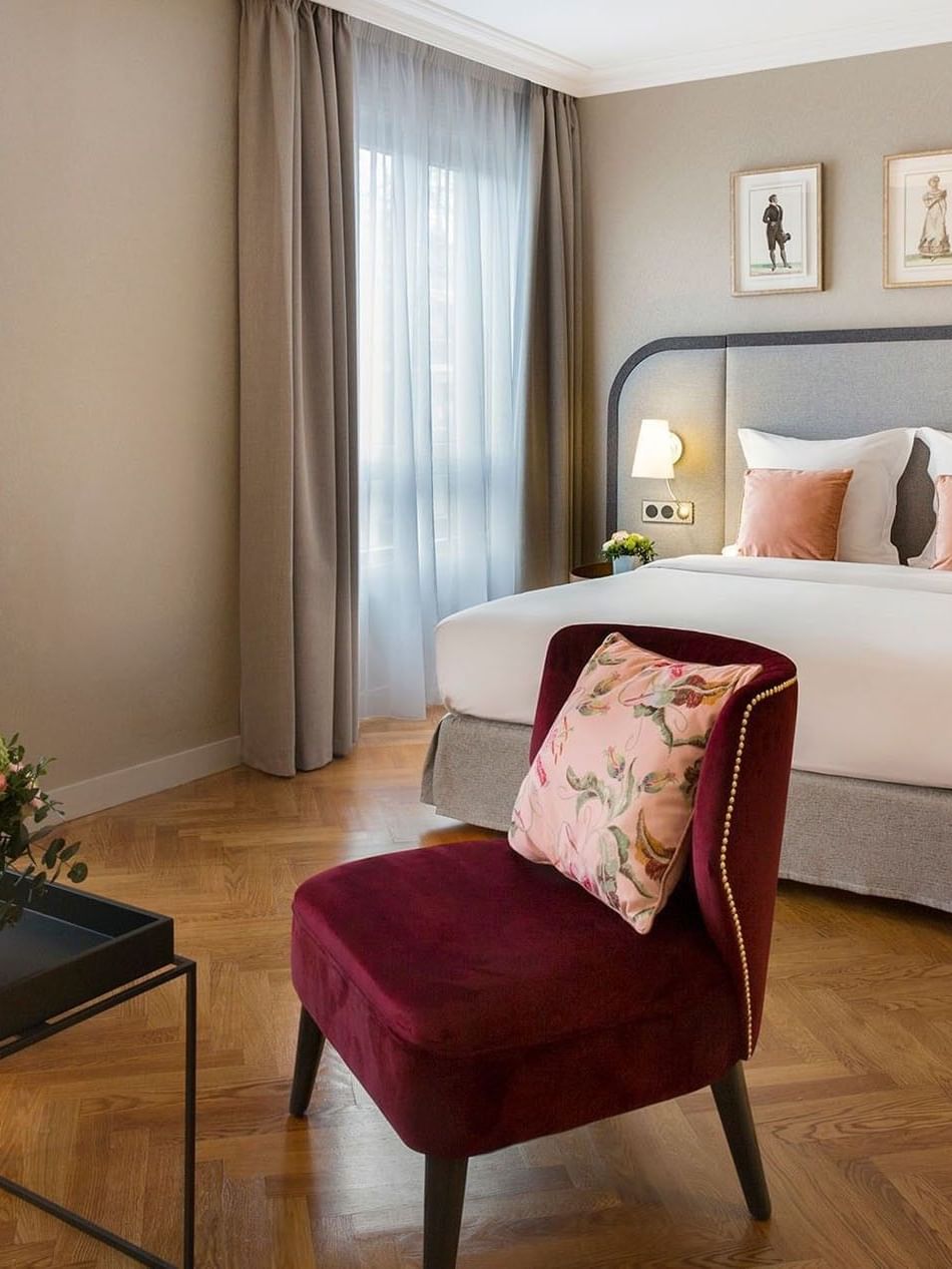 La chambre Deluxe du Warwick Reine Astrid-Lyon offre un espace accueillant de 35 m², alliant style classique et confort moderne . Elle comprend un espace combiné chambre/salon, une kitchenette entièrement équipée, ainsi qu’une vue sur le jardin privé ou le boulevard des Belges. Chaque chambre est décorée dans des tons chaleureux, avec un parquet et un mobilier contemporain. Une connexion Wi-Fi gratuite, un plateau de courtoisie (thé et café) ainsi qu’une télévision à écran plat avec 80 chaînes complètent l’expérience.