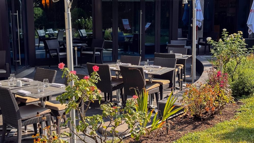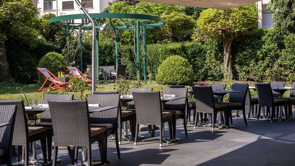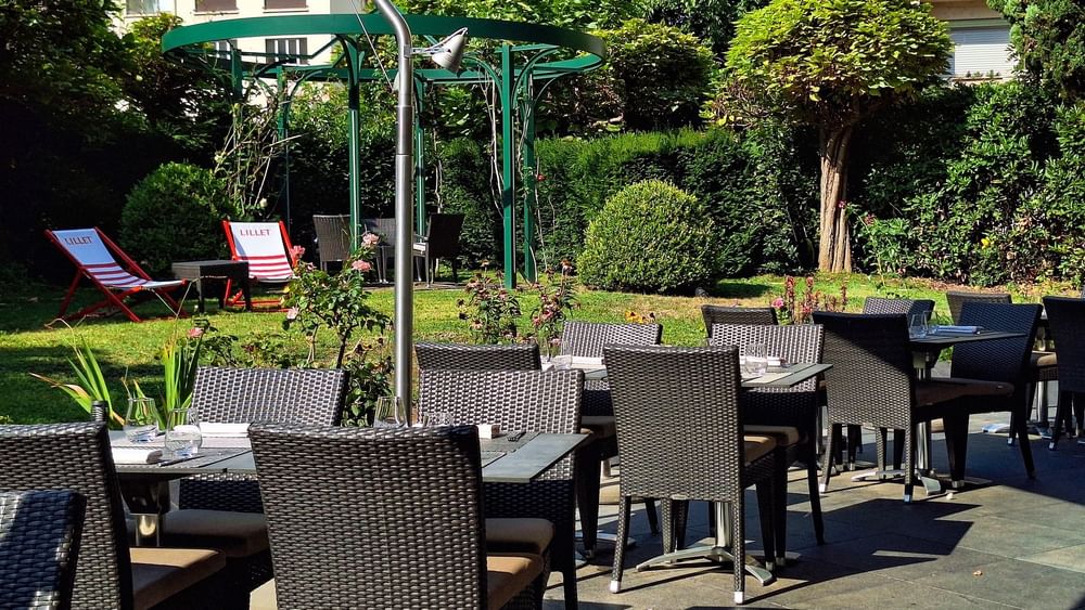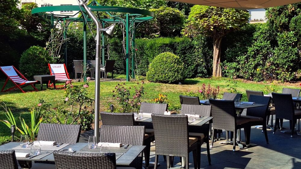 Au cœur de la ville, vous apprécierez cet écrin verdoyant. Le Lounge Bar & Terrasse vous accueille pour une pause durant la journée ou un verre à la sortie du bureau dans un cadre chaleureux et détendu.