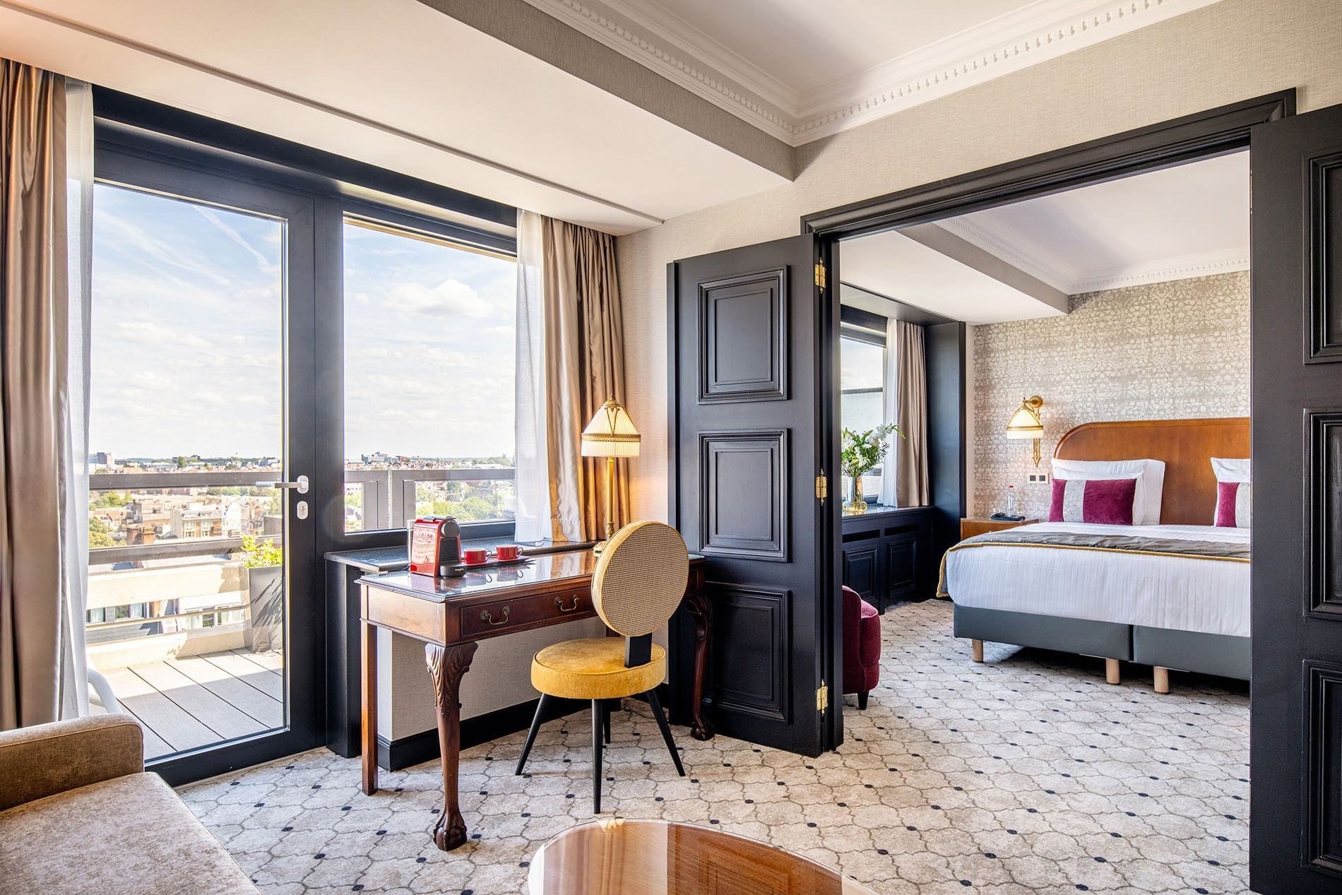 Onlangs gerenoveerd, belooft onze suite van 50 m² in het Warwick Barsey een comfortabel en elegant verblijf. Volledig verlicht, beschikt de suite over verfijnd meubilair en een privé terras met een uitzonderlijk panoramisch uitzicht. De hoofdslaapkamer, uitgerust met een kingsize bed met een topmatras en luxe beddengoed, gaat gepaard met een ruime woonkamer met een bank, een fauteuil en een houten bureau. Elk detail is zorgvuldig herzien om uw ervaring te verrijken."