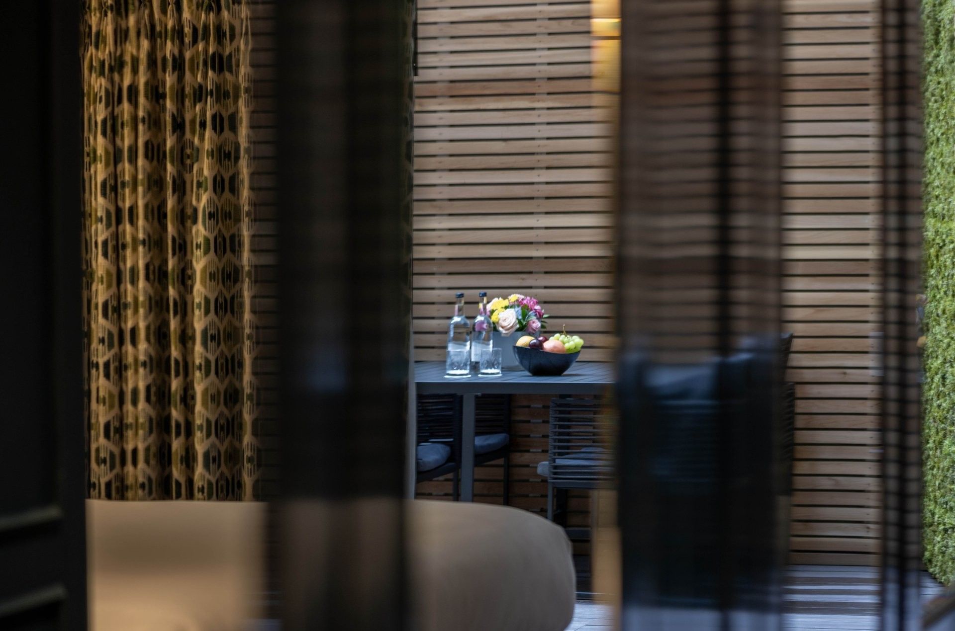 The Hyde Park Suite offers, a Master bedroom with en-suite facility which opens onto a private all weather outdoor seating area, flooding the room with light. A canopy can be opened to protect from the elements with heaters ensuring that you get the most from your stay with us, whatever the weather. The king size bed has a Hypnos mattress and is dressed in crisp Egyptian cotton. The second bedroom is snug and tranquil space. A queen size bed, again with Hypnos mattress ensures a peaceful night’s sleep. One additional bathroom is located across the corridor. There is a beautiful kitchenette, perfect for when you want to withdraw from the world at large and have a night in with a light meal and laundry service is also offered as standard and included as part of the package.