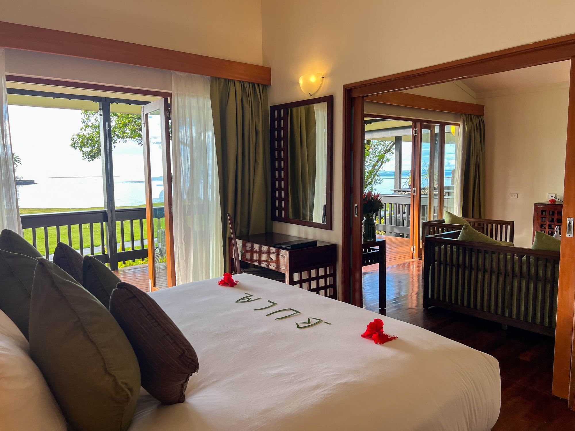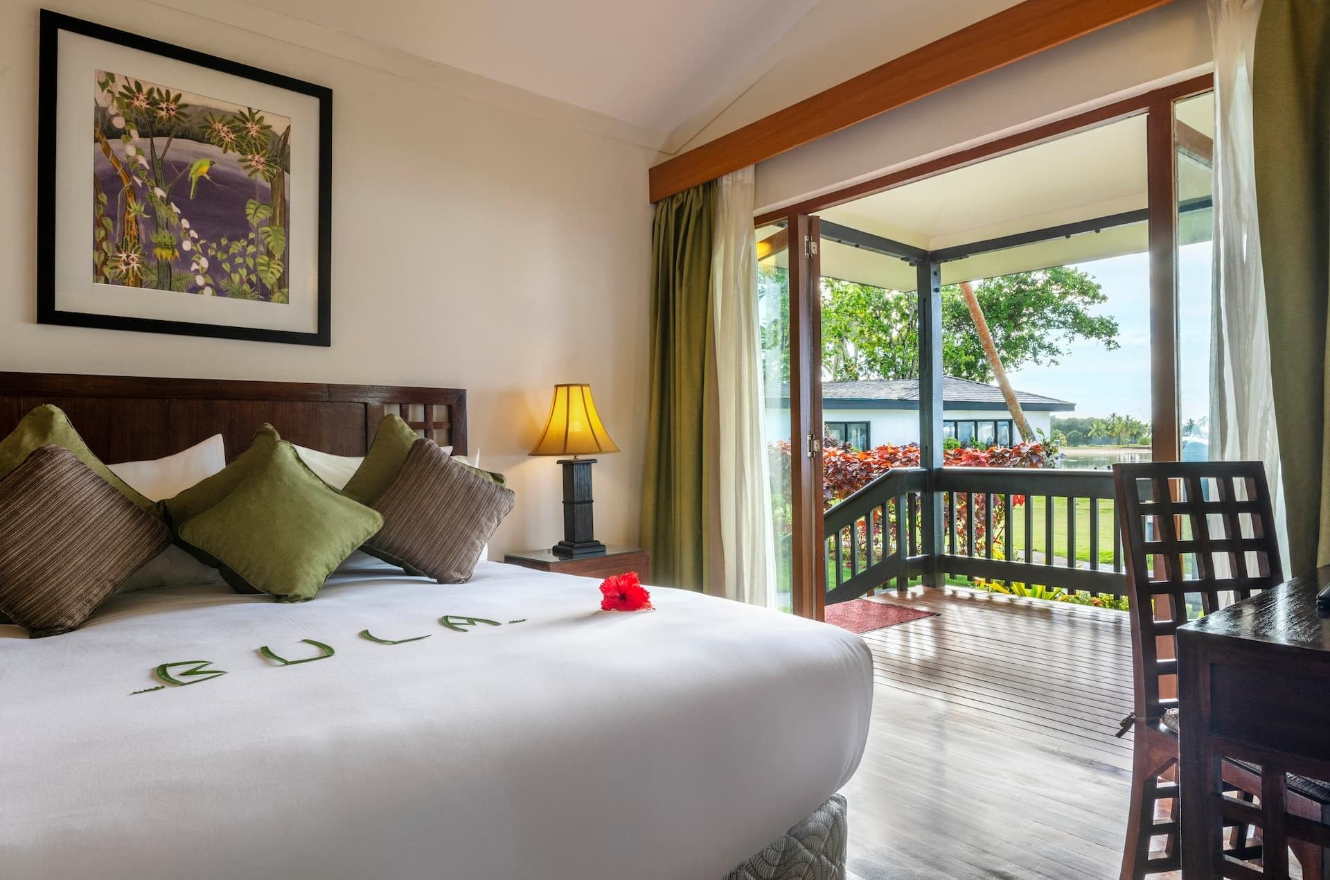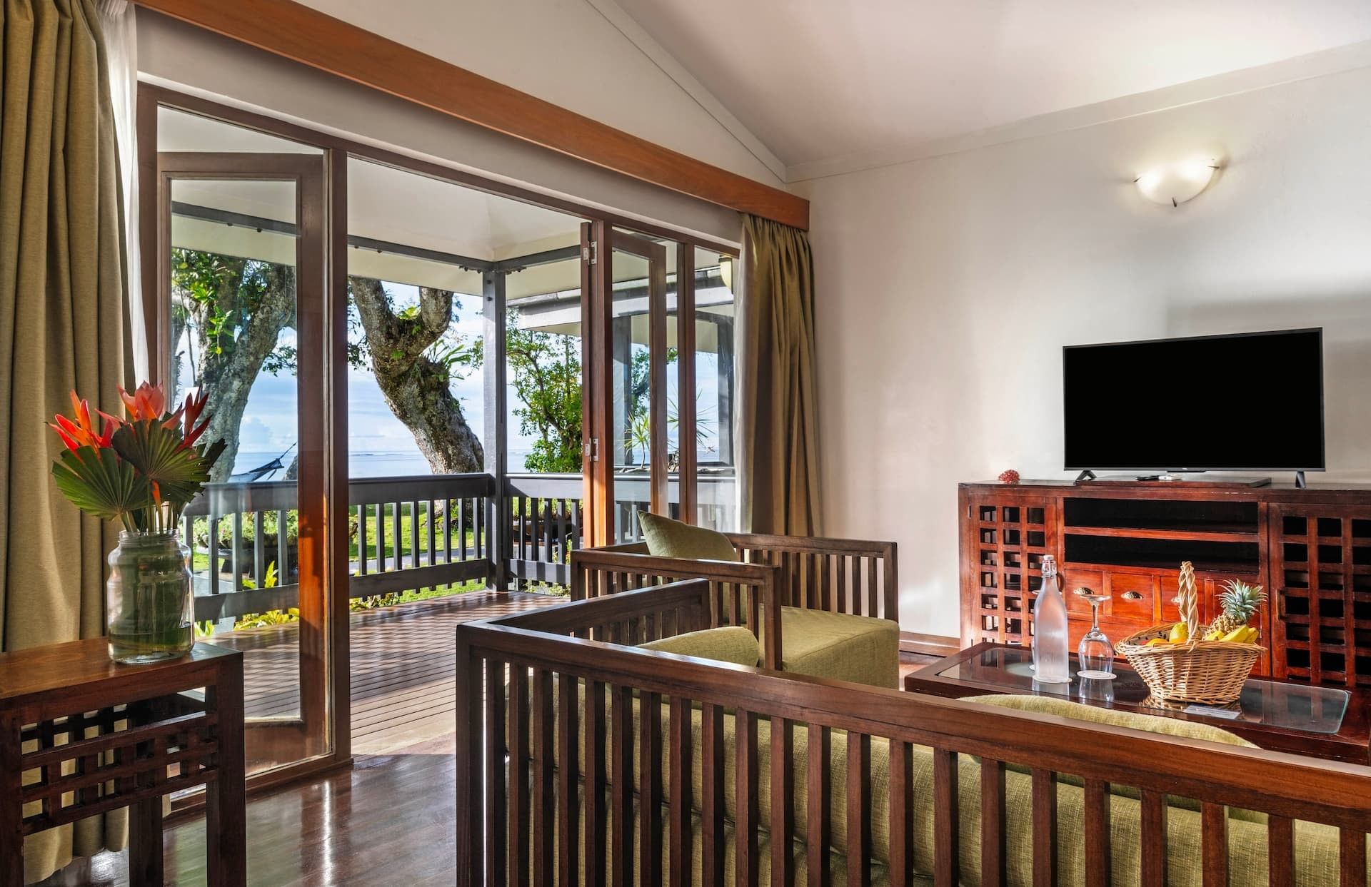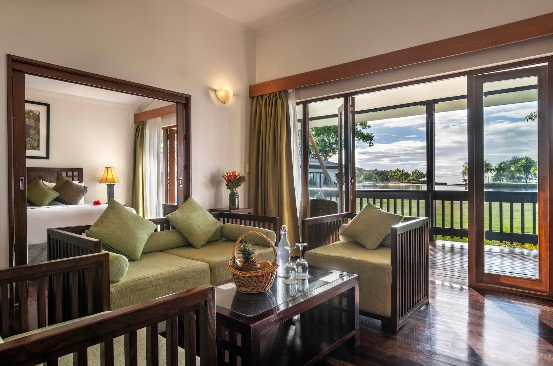 Spanning 62 sq m (667 sq ft), the One-Bedroom Villa offers a sophisticated retreat steps from the beach, with serene views of the gardens or ocean, ideal for honeymooners and couples. These indulgent accommodations feature a king bedroom and a separate living room furnished with a sofa, armchairs, and flat-screen televisions. A private furnished balcony or patio invites relaxation, while separate bathrooms include a bath and shower, premium amenities, and thoughtful extras such as a fruit basket, sparkling wine, minibar fridge, and plush robes and slippers.