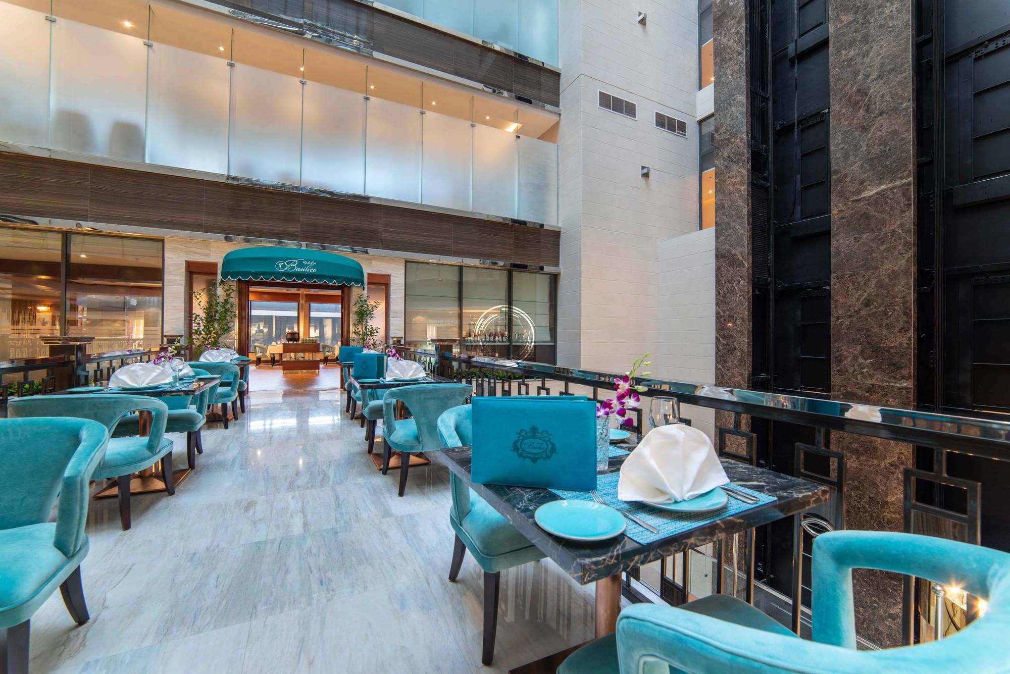Warwick Al Khobar offers an array of exceptional dining options, recognised among the best in downtown Al Khobar. Guests can enjoy all-day dining at Al Multaqa Restaurant, featuring a diverse selection of Saudi Arabian and international dishes. Evenings invite relaxation in the luxurious Cigar Lounge with a fine cigar or a visit to the decadent Chocolate Café to satisfy sweet cravings. Every dining experience at Warwick Al Khobar promises to delight the senses.
