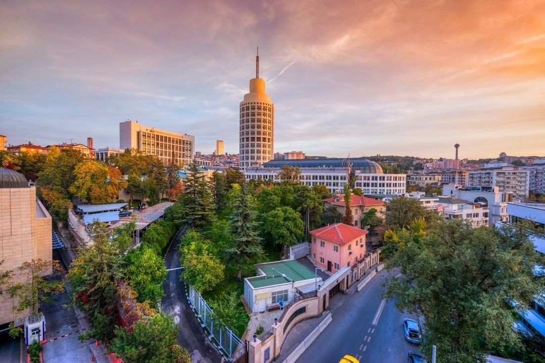 Street view of Museum of Anatolian Civilizations by green trees surrounding a winding road near Warwick Ankara Plus Icon