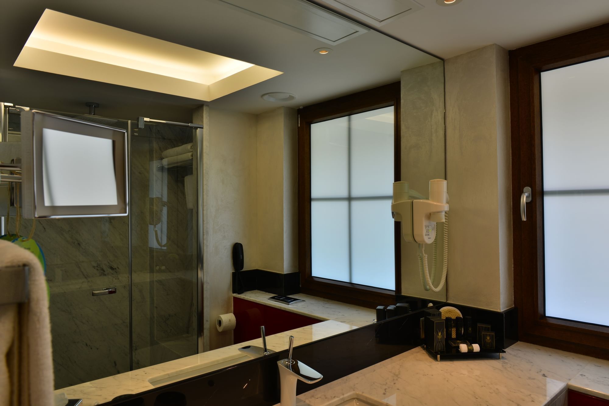 Spanning 33 square metres (355 sq ft), Executive Rooms offer refined comfort for business and leisure travellers alike. A king-size bed, ergonomically designed workstation, and marble bathroom combine functionality with Turkish-inspired elegance. Large windows frame views of the Ankara cityscape, bringing natural light into the warm, sophisticated interiors.