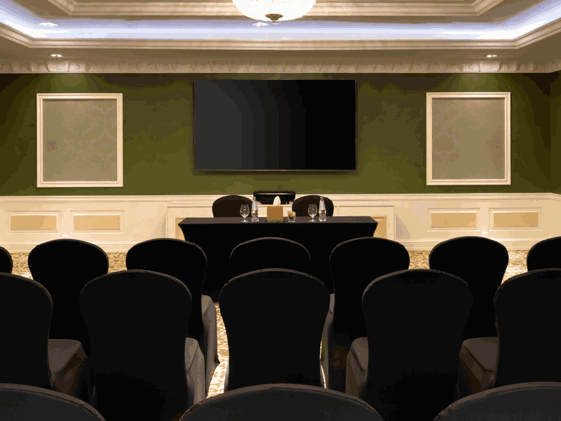 Slightly larger at 51 square metres (549 sq ft), the Emerald Room mirrors the Coral Room's versatility, comfortably hosting up to 45 guests in a theatre arrangement.