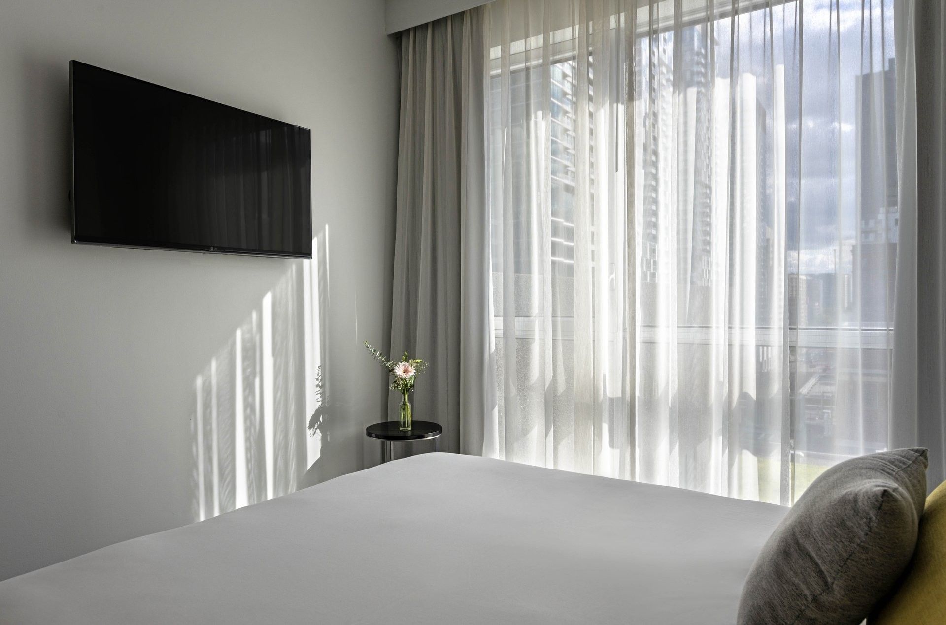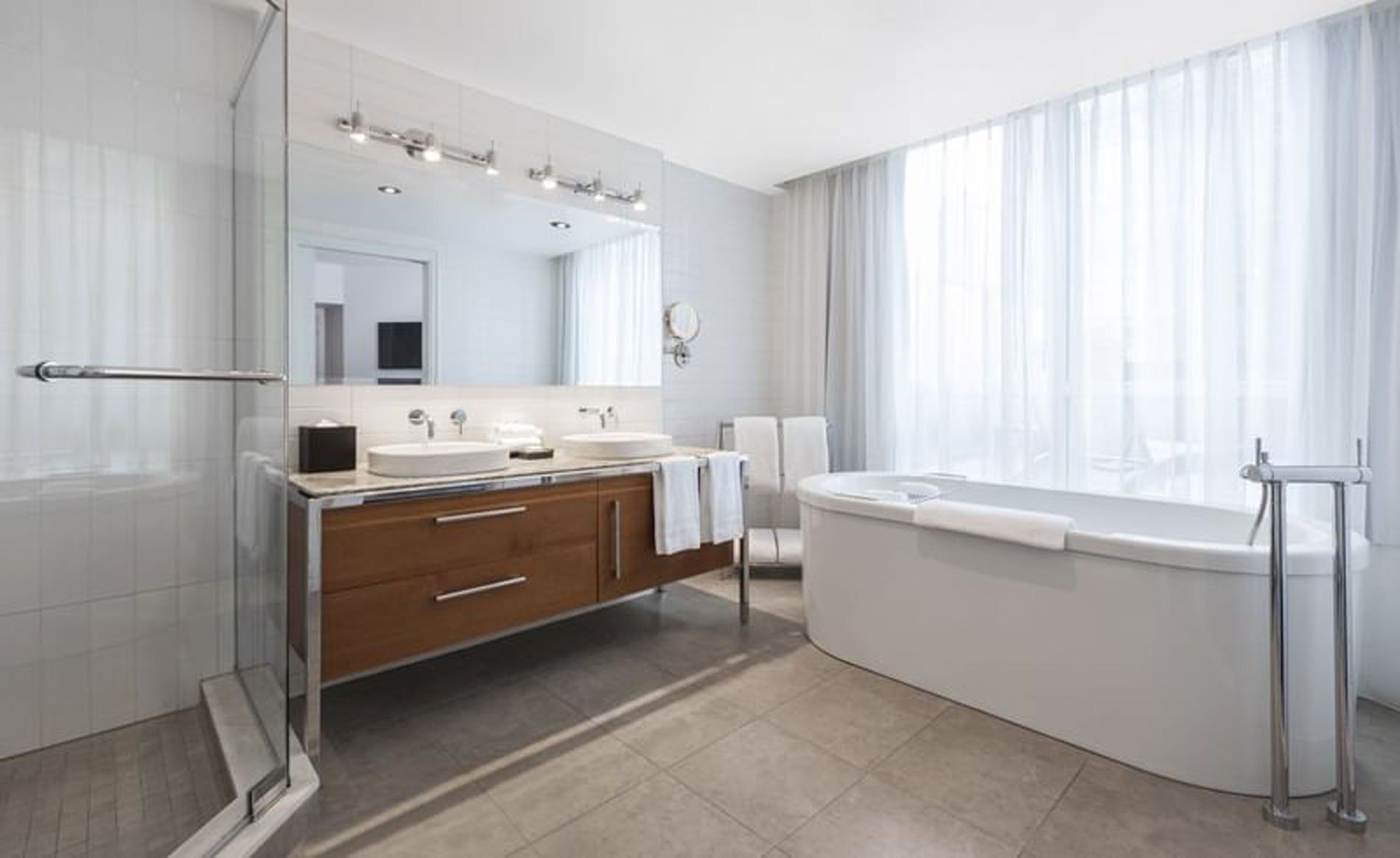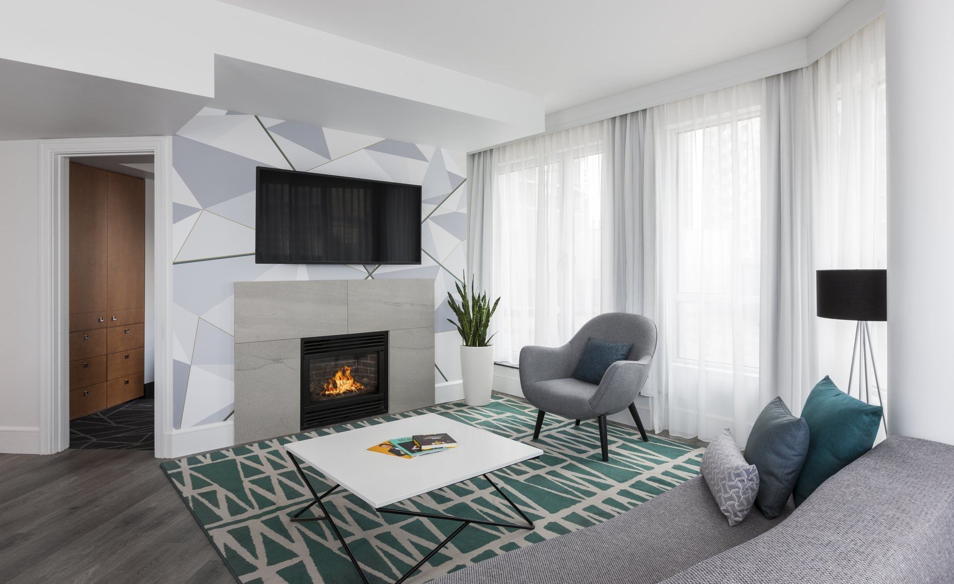 The largest and most expansive suite at Warwick Le Crystal, the Penthouse René-Lévesque offers the ultimate in downtown luxury. A wraparound terrace overlooking René-Lévesque Boulevard opens to stunning views of Mount-Royal, while the corner layout fills the space with light and energy. The suite features a master bedroom with ensuite bath, a second bedroom with private bath, a bright and airy living room with fireplace, and an elegant dining area. For larger parties, this suite can be connected to an adjacent Signature Suite via a private foyer.