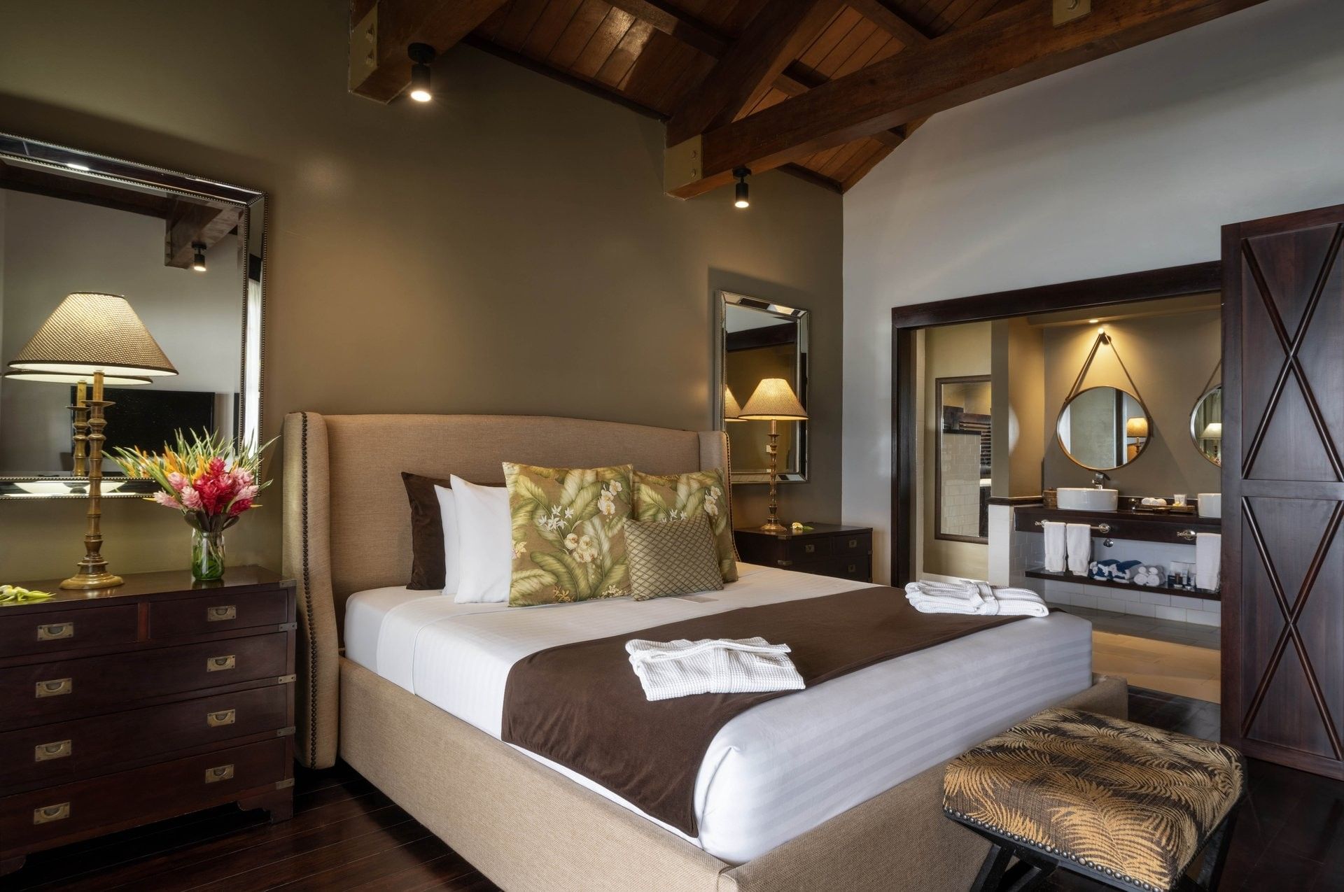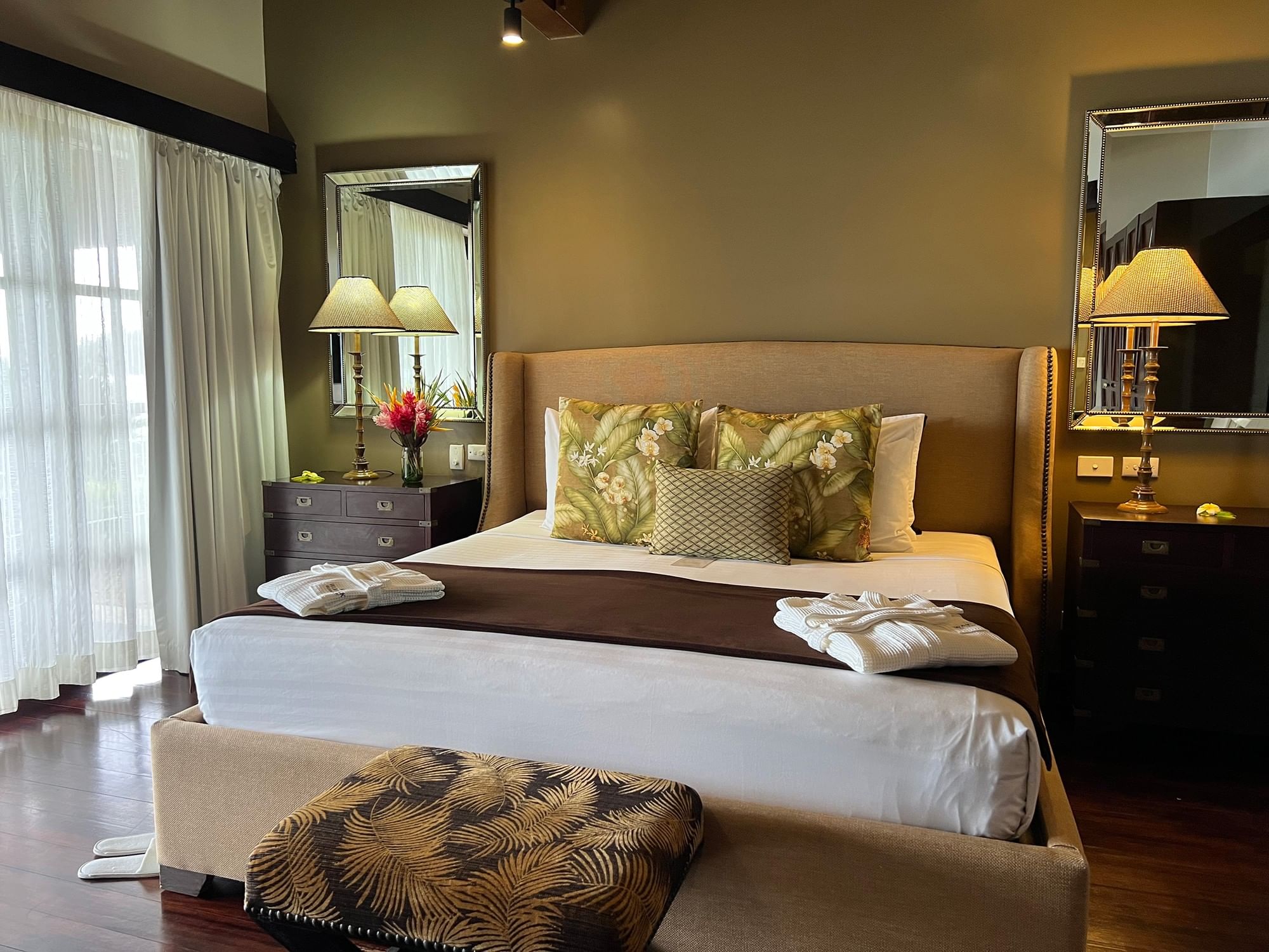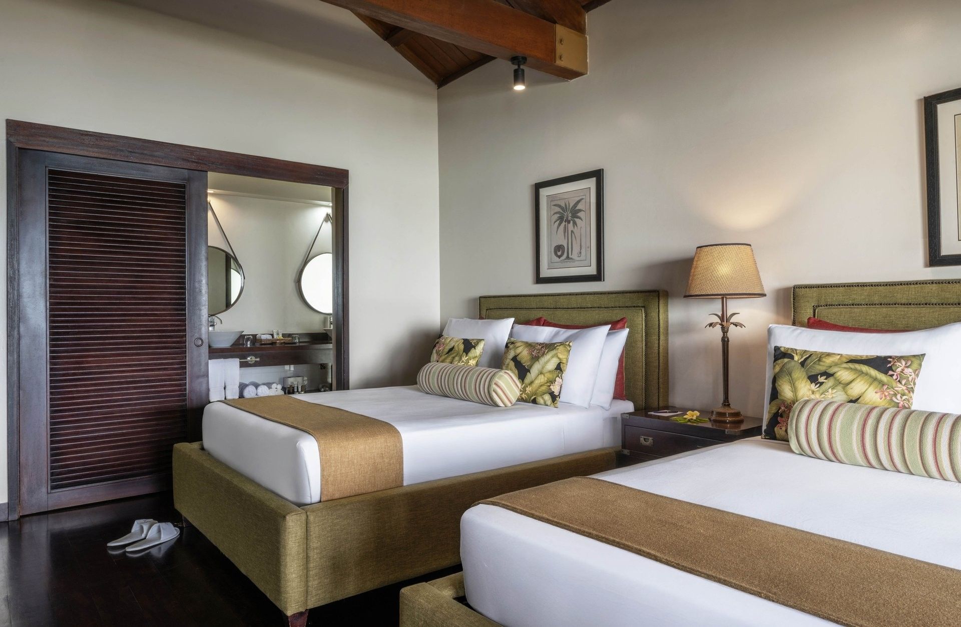 The 180 m² Erakor Residence is perfectly positioned on the beachfront of Erakor Lagoon. This two-bedroom villa includes a master suite with one king bed and a second bedroom with two double beds, divided by a spacious living area leading to a large furnished patio. Featuring two ensuite bathrooms, including a spa bath in the master, and a private plunge pool overlooking the lagoon, this residence accommodates up to two adults and two children or four adults.