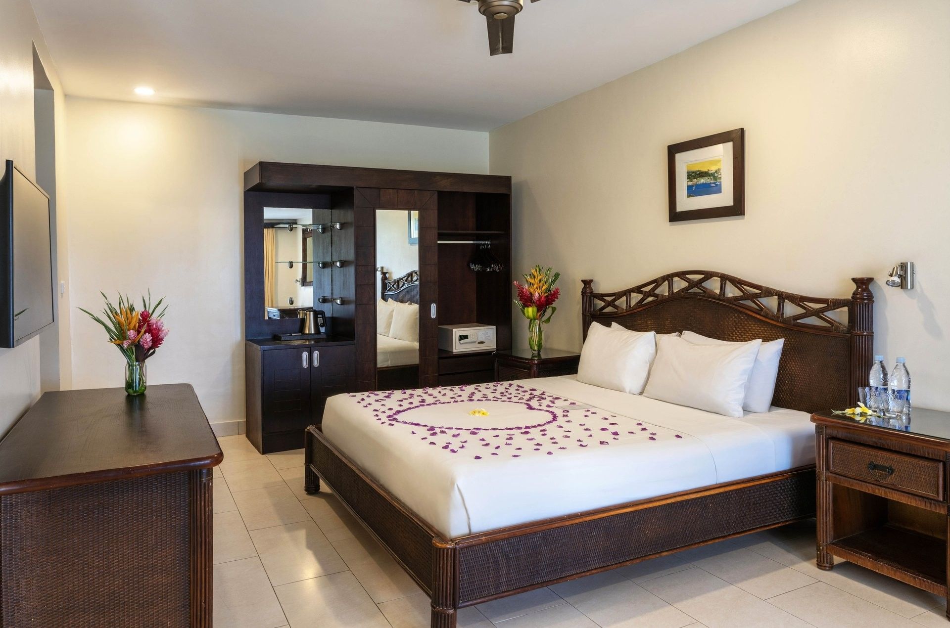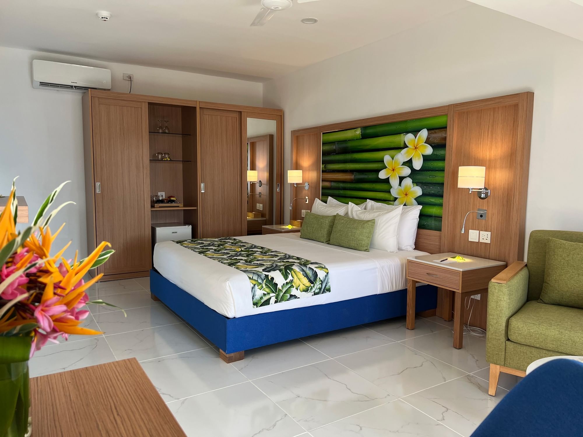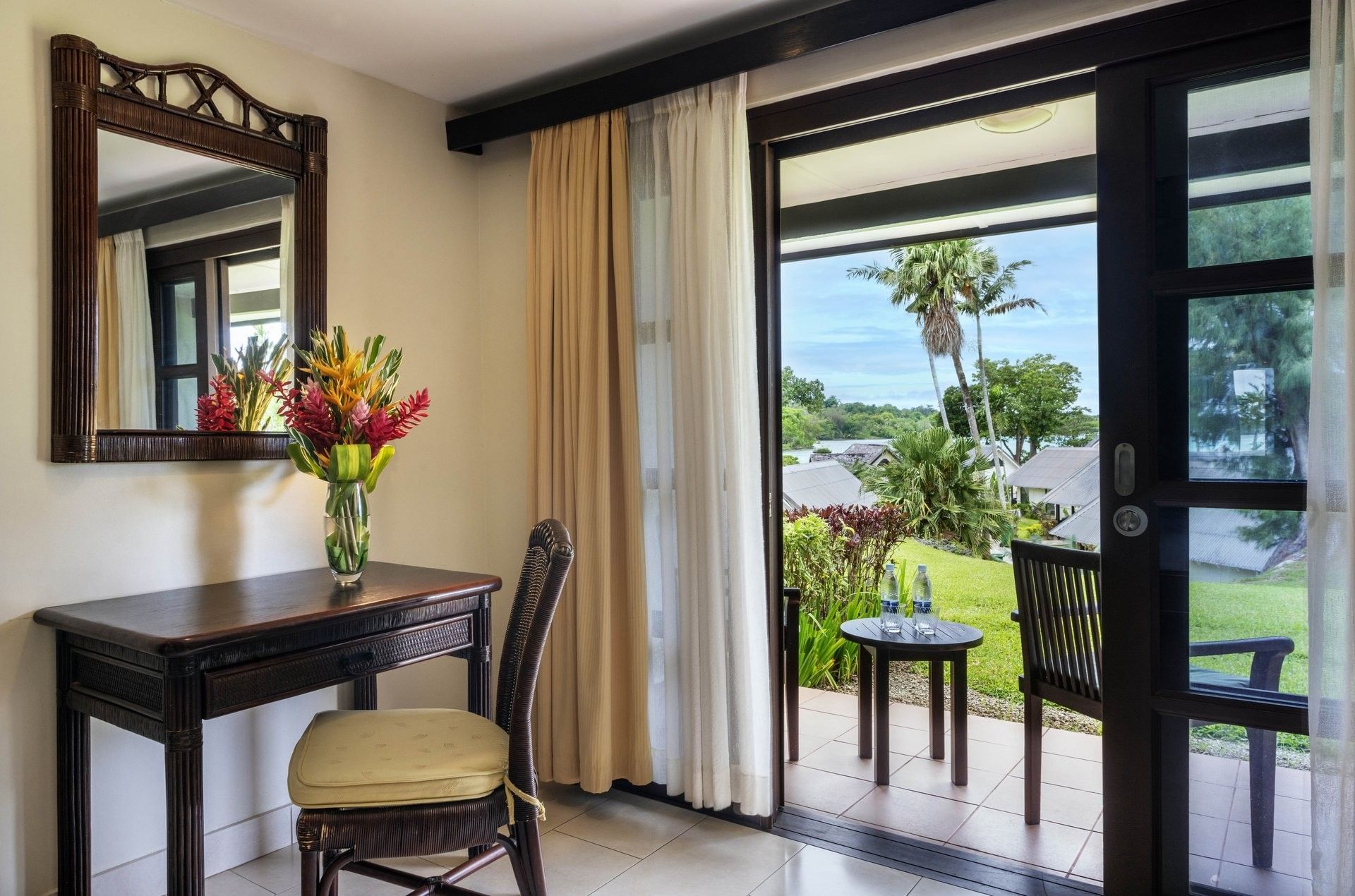Offering 34 m² of bright, airy space, the Garden View Room overlooks beautifully landscaped tropical gardens. Furnished with dark mahogany furniture, including a work desk, sideboard, and cupboard, each room also features a balcony or patio with casual outdoor seating. Ideal for families or couples, these rooms accommodate up to two adults and two children or three adults, with flexible bedding options including one king bed, two double beds, one queen and one single bed, or one queen and two single beds. Interconnecting rooms are available.