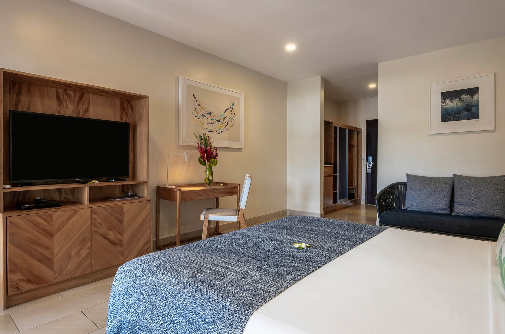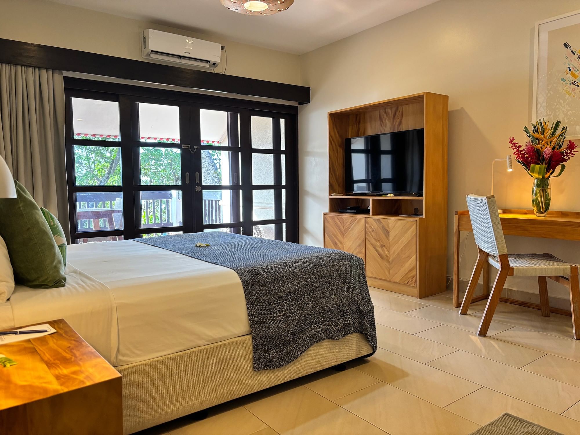 With 34 m² of newly refurbished space, the Lagoon Superior Room offers modern décor, premium furnishings, and breathtaking views of Erakor Lagoon. Light wood furniture, tiled floors, and green and blue accents create a calming environment, complemented by a private balcony. These rooms accommodate up to two adults or two adults with one infant, with a choice of one king bed or two single beds. Interconnecting rooms are available.