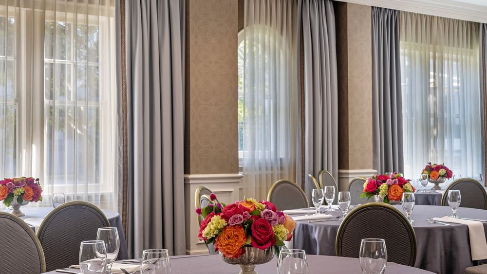 The Oak Lawn/Terrace is a refined, multi-functional event space designed to seamlessly transition between corporate meetings and elegant social events. Featuring large windows that invite in natural light, the room is complemented by neutral wall finishes, and classic wainscoting for a polished, timeless aesthetic