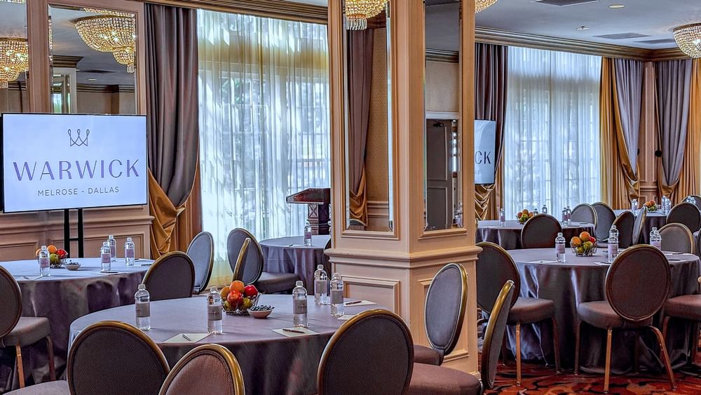 Timeless elegance, traditional charm and a reminder of the past are words that describe our classic ballroom. At the heart of the Warwick Melrose – Dallas, the Ballroom features glimmering chandeliers, exceptional service and all the comforts of today while stepping back into a time once remembered