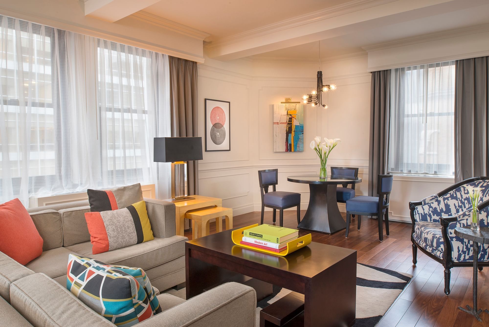 Inspired by the Museum of Modern Art, this 729-square-foot suite is a curated blend of contemporary design and artistic expression. Eclectic furniture and bold, dynamic works of art transform this space into a sensory experience.