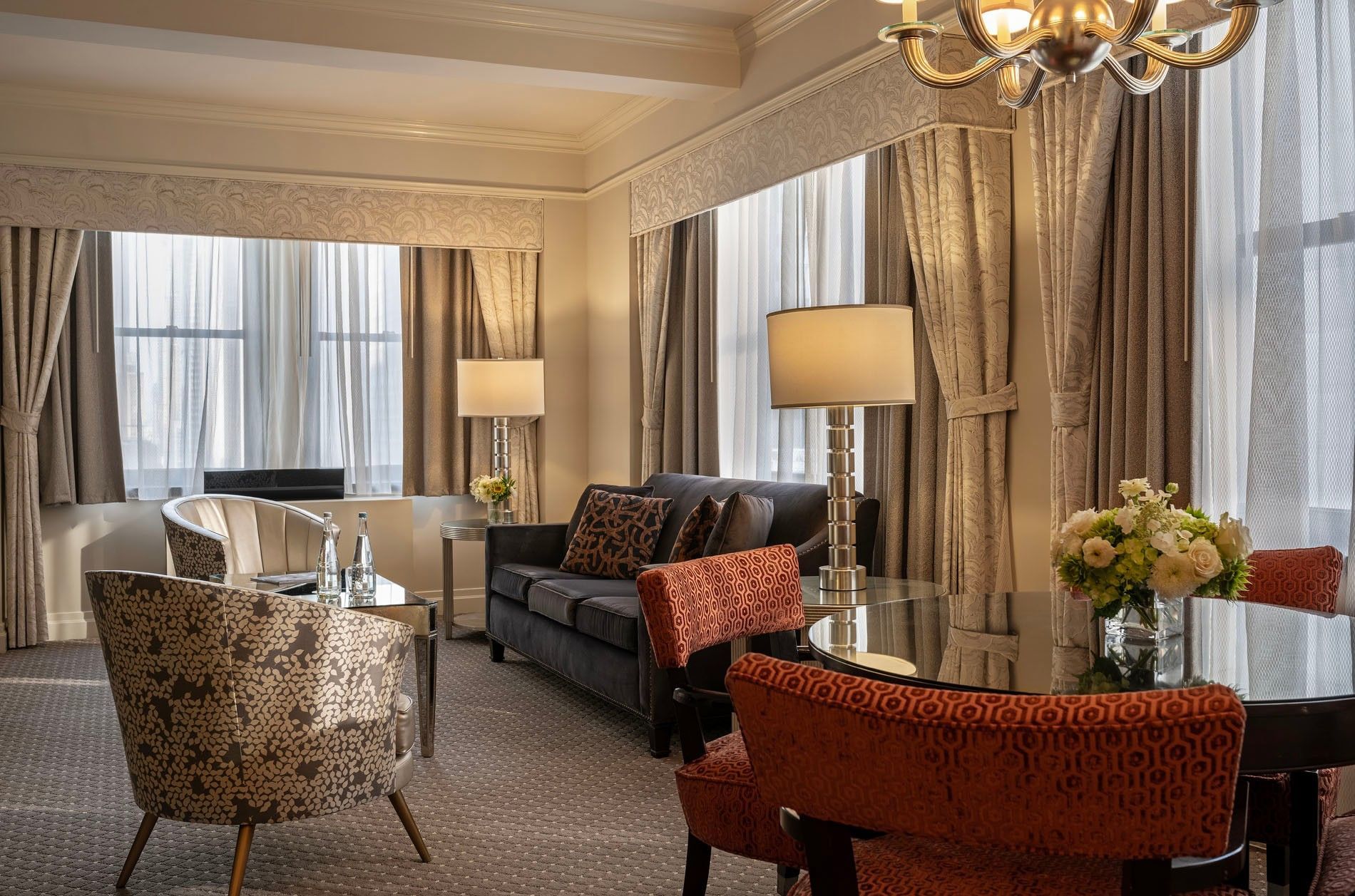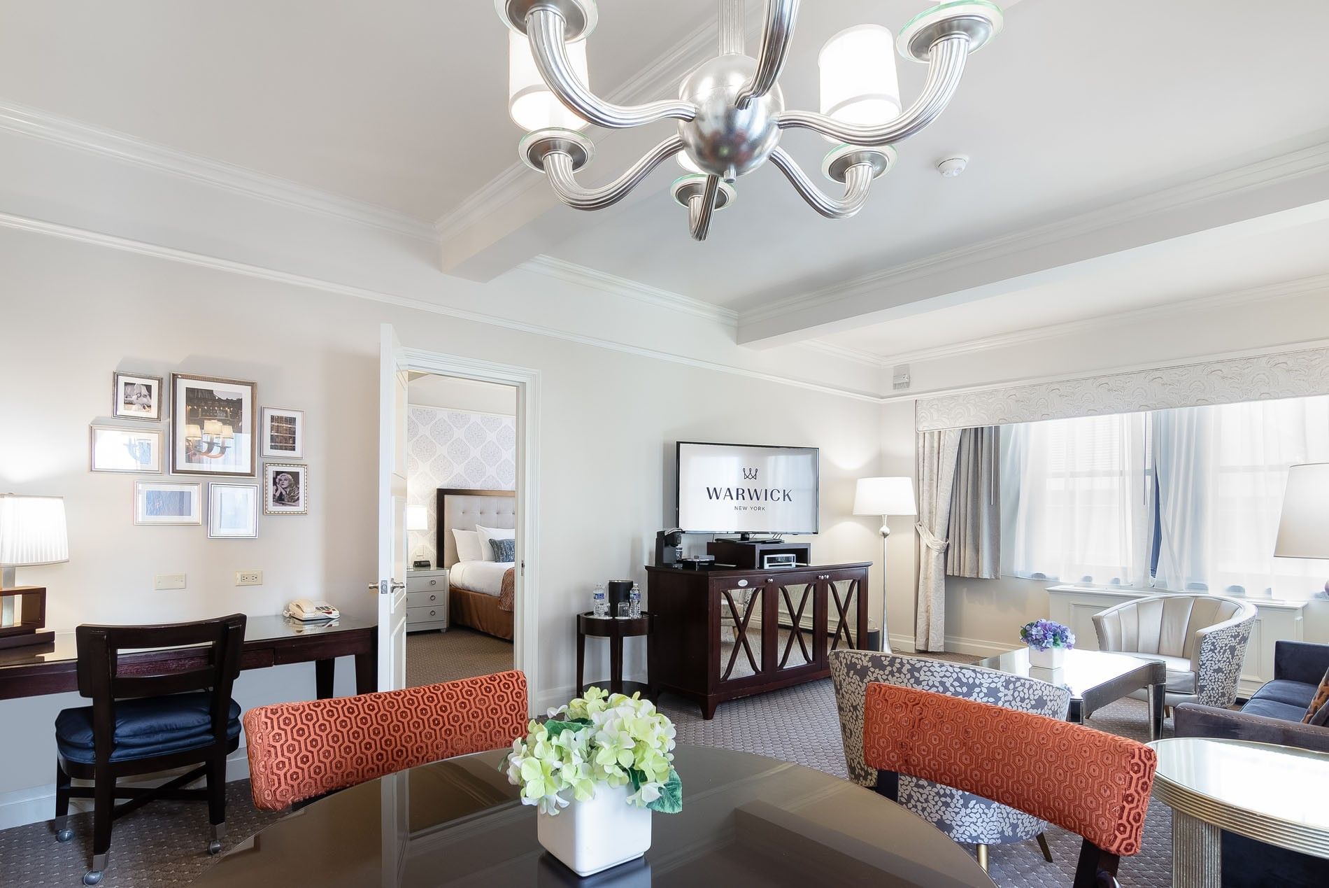 Offering 675 square feet of classic elegance, this suite features sweeping views of the Avenue of the Americas. A spacious living area leads to a luxurious king bedroom with a marble bathroom, creating an inspired ambiance that is uniquely Warwick.