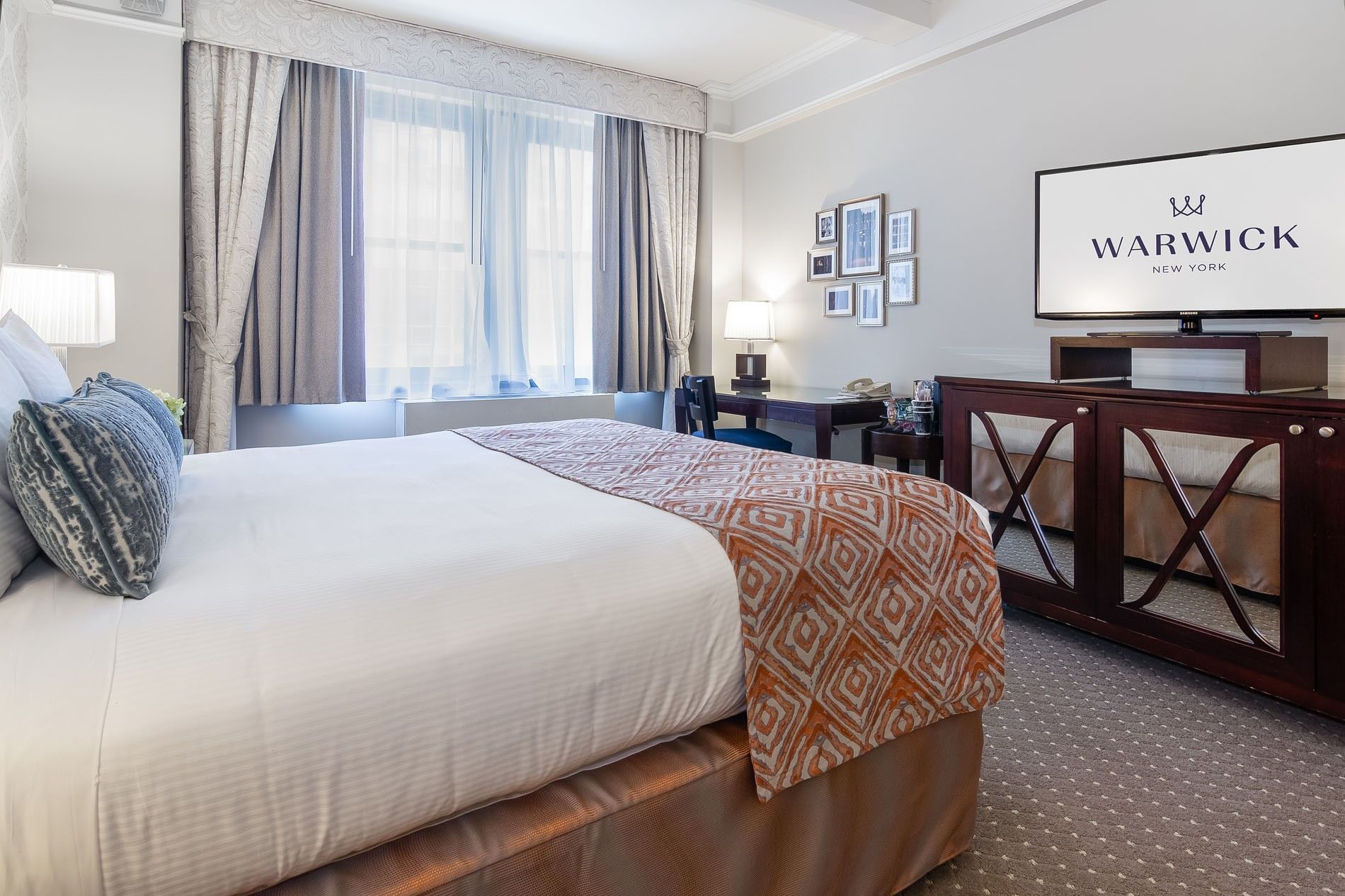 Elegantly designed with Warwick’s signature touches, this spacious suite offers breathtaking 54th Street views.