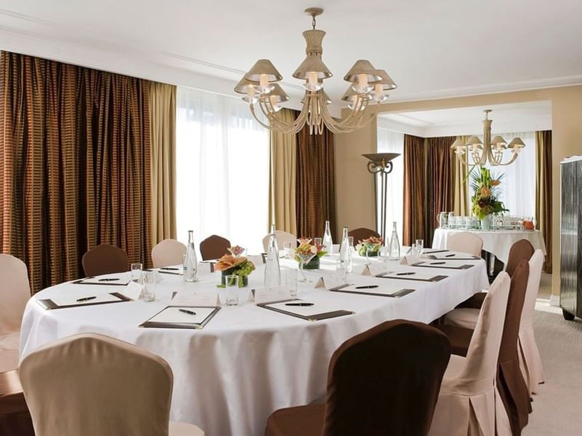 Located on the 8th floor, this exclusive 45 m² (484 ft²) suite offers a luxurious setting for high-level meetings, accommodating up to 18 guests in a boardroom setup, complemented by stunning views of the Eiffel Tower.