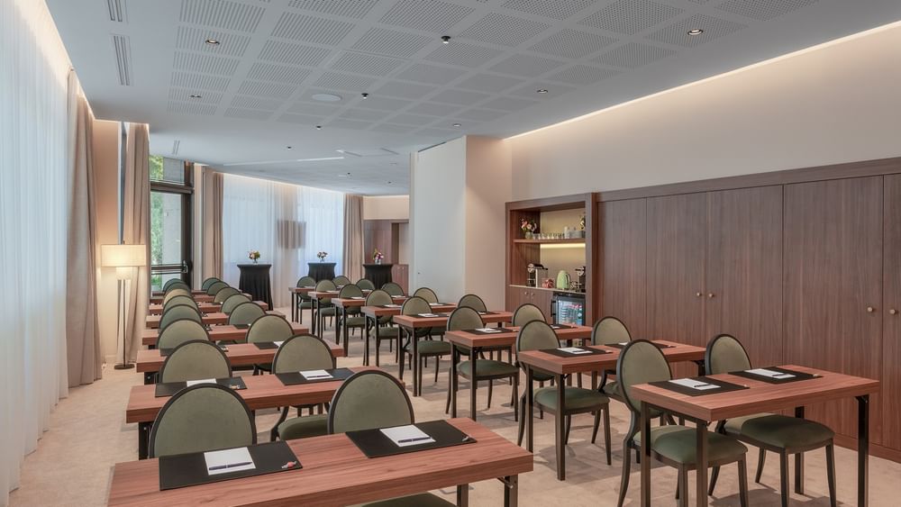 Measuring 110 m², the Astrid Salon offers an elegant space for gatherings, accommodating up to 42 guests in classroom style or 70 guests in banquet style . Its adaptable layout and natural light create a welcoming atmosphere for productive sessions. Ideal for executive meetings or private dinners, it offers versatile configurations to suit your event needs.